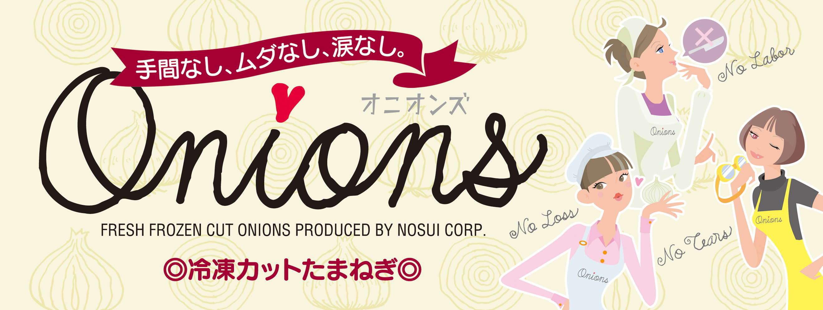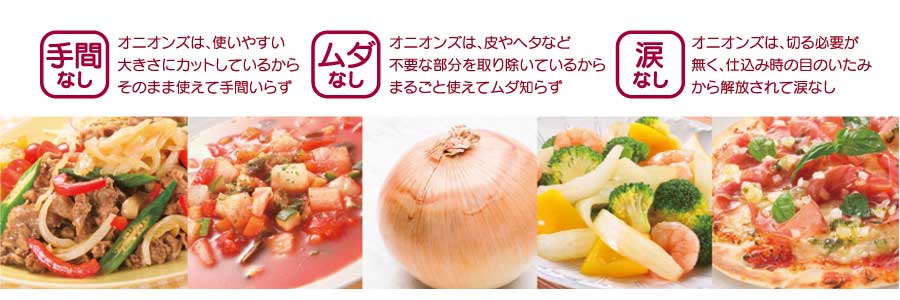 手間なし、ムダなし、涙なし。あなたの味方、冷凍たまねぎ「オニオンズ」。 ノースイ「オニオンズ」は、選別した良質な原料を使いやすい形状/サイズにカットし、急速冷凍。幅広いメニューにお手軽にお使いいただけます。 商品紹介 オニオンズの商品カタログ オニオンズの更に詳しい情報をお知りになりたい方は、商品カタログご用意しております。電子カタログですので、PC、タブレット、スマホ上でそのまま閲覧いただけます。