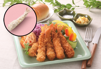 レモングラス、、ミント、オリーブ等のハーブを配合した飼料で健康的に育った「ハーブシュリンプ」で作ったこだわりのエビフライです。