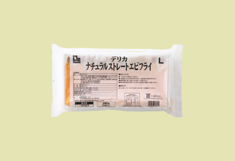 時間が経ってもサク味が残る電極パン粉を使用しております。ボリューム感があり、立体感のあるバナナ形状のエビフライです。