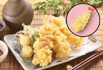 ボリューム感を求められる食シーンに適したえび天ぷらです。完全油調しておりますので解凍してお召し上がり頂けます。