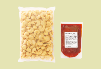 むきえびを国内工場にて丸ごとフリッターにしました。えびチリ用のソースもセットになっており、フリッターは油調で、チリソースは湯煎してご利用ください。
