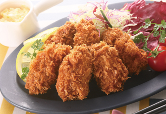 米国食品医薬局(FDA)の認定清浄海域で養殖したかきを国内工場で、サクサクした衣をつけて急速冷凍した商品です。