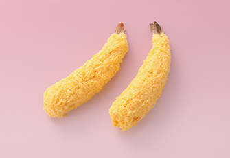 ボリューム感があり、立体的なバナナ形状のえびフライです。細かく粉砕したパン粉を丁寧に手付けした、軽い食感が特徴のえびフライです。