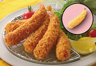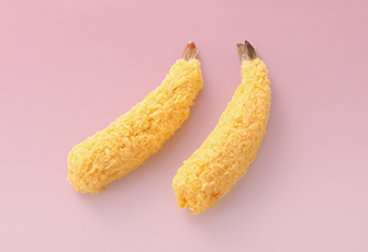 ボリューム感があり、立体的なバナナ形状のえびフライです。細かく粉砕したパン粉を丁寧に手付けした、軽い食感が特徴のえびフライです。