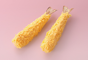 ボリューム感があり、立体的なストレート形状のえびフライです。細かく粉砕したパン粉を丁寧に手付けした、軽い食感が特徴のえびフライです。