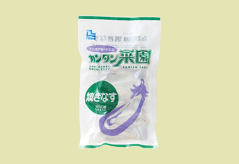 千両なすを焼き、ひとつひとつ丁寧に皮むきした焼きなすです。1袋に6本入っています。