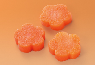 花の形にスライスカットしたにんじんです。切る手間がいらず、味付けするだけでご利用頂けます。