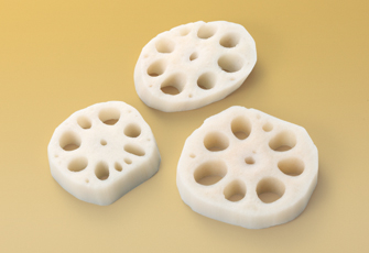 シャキシャキ食感のれんこんを天ぷら用としてスライスカットしました。