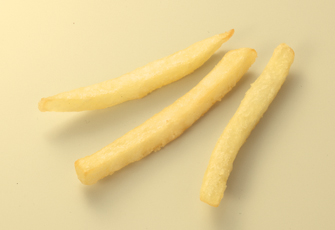 米国産のじゃがいもに透明の塩味付きの衣を付けたフライドポテトです。味付けする手間もなく、衣付きの為、ホールディングタイムも従来品より長いのが特長です。