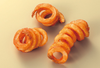 米国産のじゃがいもを螺旋(らせん)状にカットし、スパイシーに味付けしたフライドポテトです。