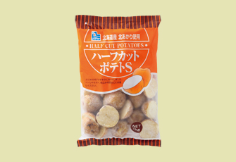 北海道産じゃがいもの北あかり種を皮付きでハーフカットしプリフライしました。北あかり特有の肉色と風味をお楽しみ頂けます。