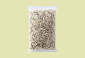ごぼうの皮をむいてからささがきカットしました。キンピラ、かき揚げ、炊き込みご飯など様々なメニューにご利用頂けます。