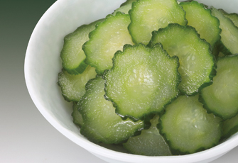 新鮮なきゅうりを約3㎜スライスし、ブランチングした後にIQF凍結しました。再加熱する必要が無く、解凍するだけで安心にお使い頂ける商品です。
