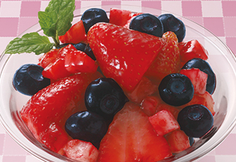 人気の高いいちごとブルーベリーをミックスした商品です。いちごは具材にごろっと感が出るようにダイスカットとハーフカットを配合させました。