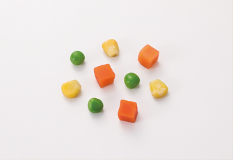 欧州産の良質なとうもろこし、グリーンピース、にんじんをミックスしました。にんじんよりコーンの配合率が高い商品です。