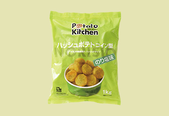じゃがいも特有の欠点(黒変等)を出来る限り除去した選別強化したのりの風味豊かな一口サイズのコイン型ハッシュポテト(のり塩味)です。