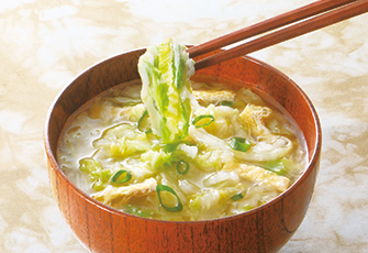 約4~5㎜幅で千切りした白菜を4分割に割れるようにスリットを入れブロック凍結をしました。折れが少なく、解凍してお召し上がり頂けますので大変便利です。