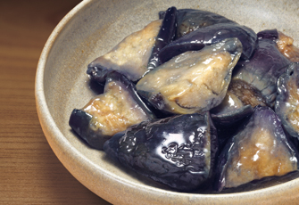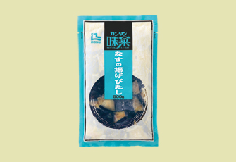 千両種のなすを乱切りし揚げびたしにしました。解凍するだけでお召し上がり頂けます。
