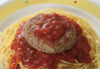 国産鶏肉を使い、ふっくら柔らかに仕上げたハンバーグです。どのソースにも合いやすいように、シンプルに味付けしており、冷めてもやわらかいので、お弁当の一品に最適です。