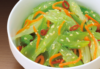 セロリの食感、風味を残しつつさっぱりした味付けに仕上げました。隠し味に鷹の爪を入れておりピリッと辛く、彩りも豊かに仕上げてます。