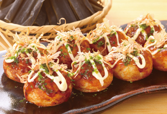 日高昆布とかつおの合せだしを使用した旨みたっぷりのたこ焼です。外はカリカリ、中はトロトロに仕上げました。コンベクションオーブンでも調理してお召し上がり頂けます。