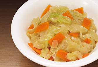 キャベツ、たまねぎ、にんじんをやさしい味付けでソテーしました。自然解凍または袋のままボイルするだけでご利用いただけますので忙しい時、人手の少ない時等に最適です。