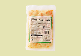 カリフラワー、たまねぎ、にんじんをフレンチドレッシングで和えました。解凍するだけでご利用いただけますので忙しい時、人手の少ない時等に最適です。